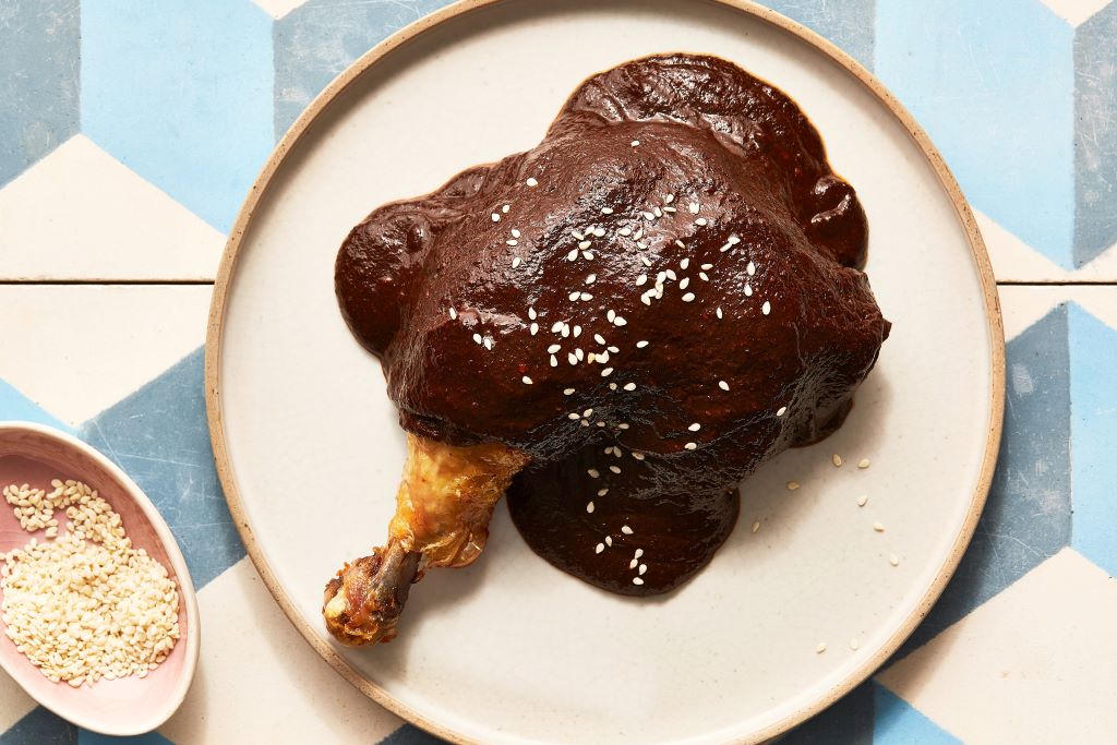 A dark, textured pile of dried Chilhuacle Negro chiles, a key rare ingredient for Oaxacan mole negro.